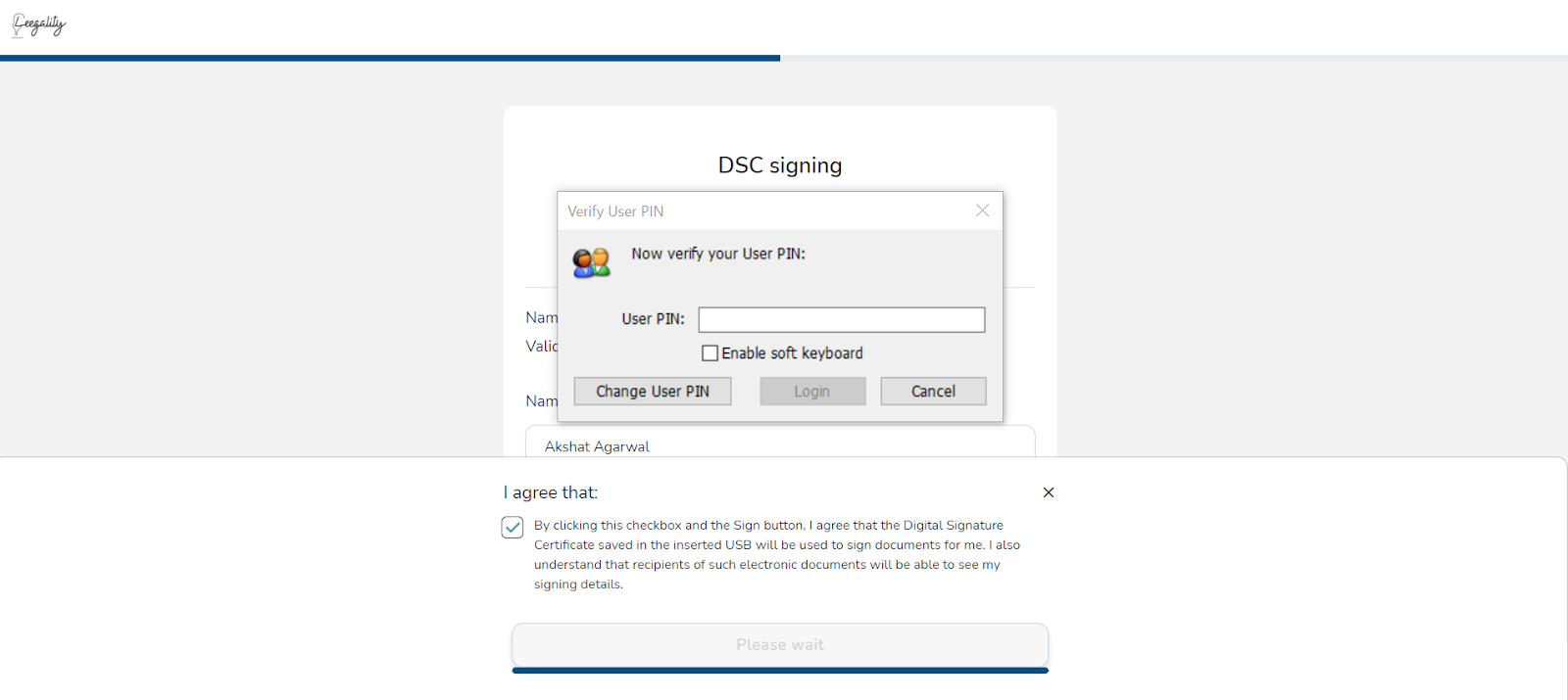 Step 6: A pop-up asking for your DSC Token PIN will appear. Enter the PIN here and click on ‘Login’.