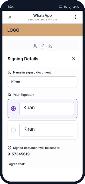 If all mentioned Aadhaar eSigns fail due to downtime or other errors, customer is shown a secure virtual sign as a backup