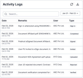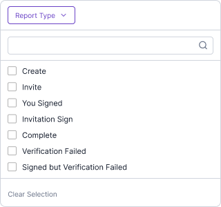 - Track document status, stamp usage, invitee details, eSign types, and more