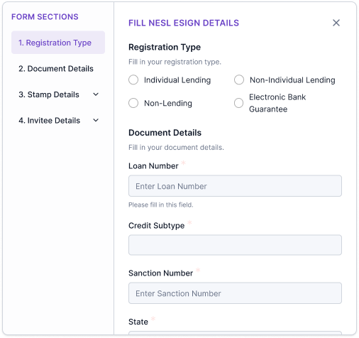 Before a loan document can be sent out for NeSL eSign, someone has to fill out the NeSL form. This form has over 86 fields — borrower details, loan amounts, interest rates, repayment terms, and more. It's long, it's detailed, and it needs to be accurate.